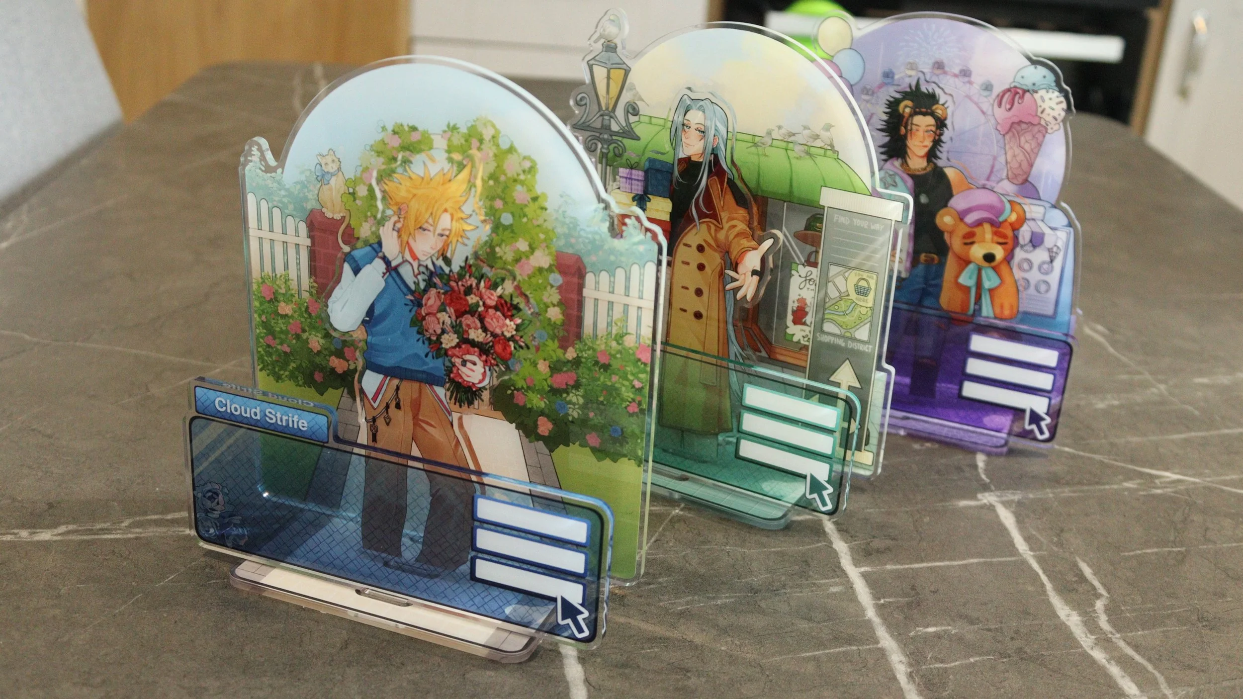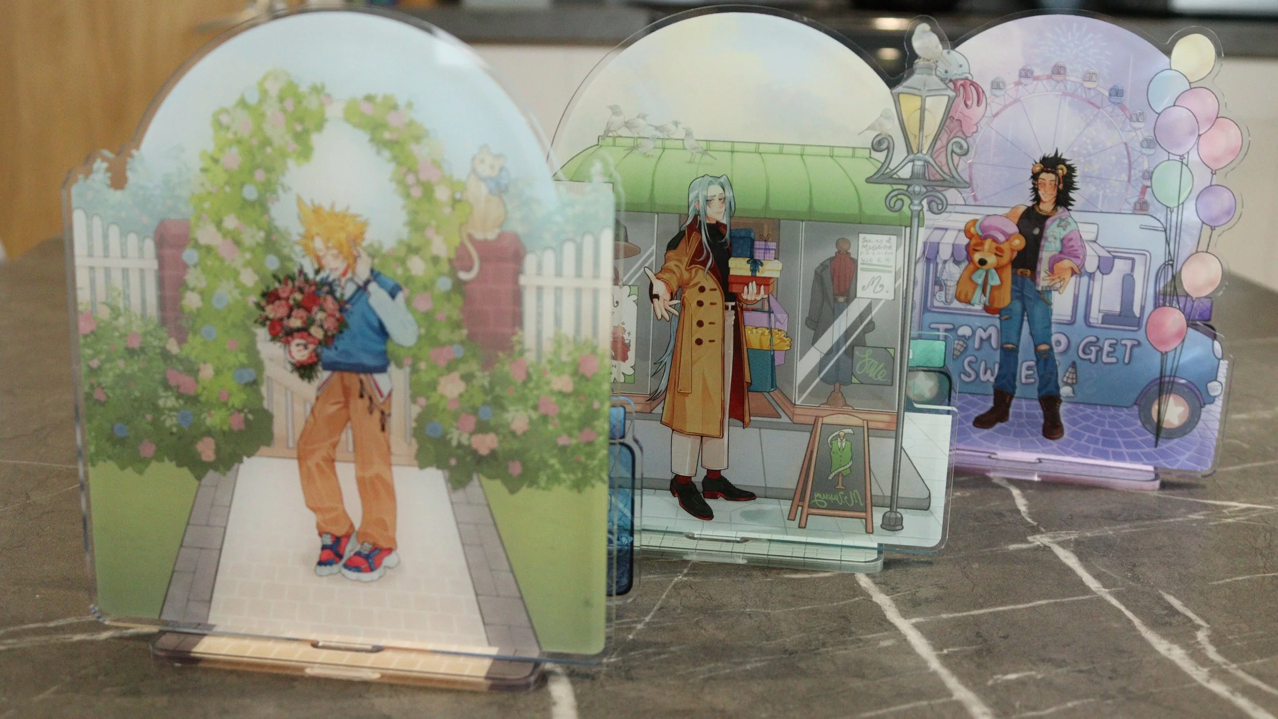 The single images are photos of standees still in stock. The second series never got photographed but there is a graphic of them. You’re welcome to ask to see them at any time. From the second series, the only ones that are available are Yelan, Diluc, Xiao, Nahida.