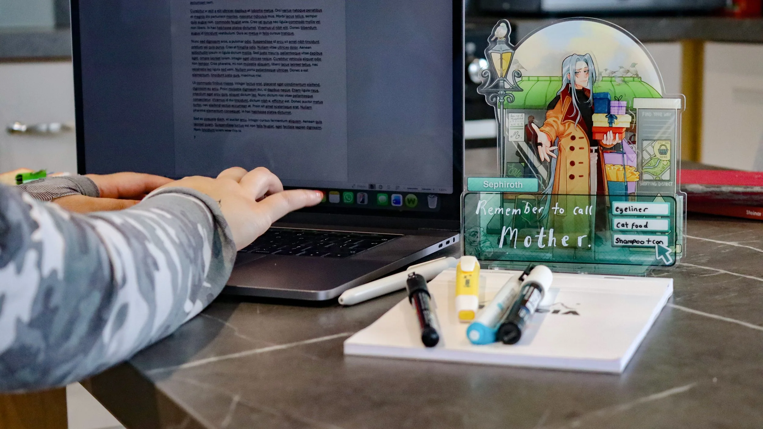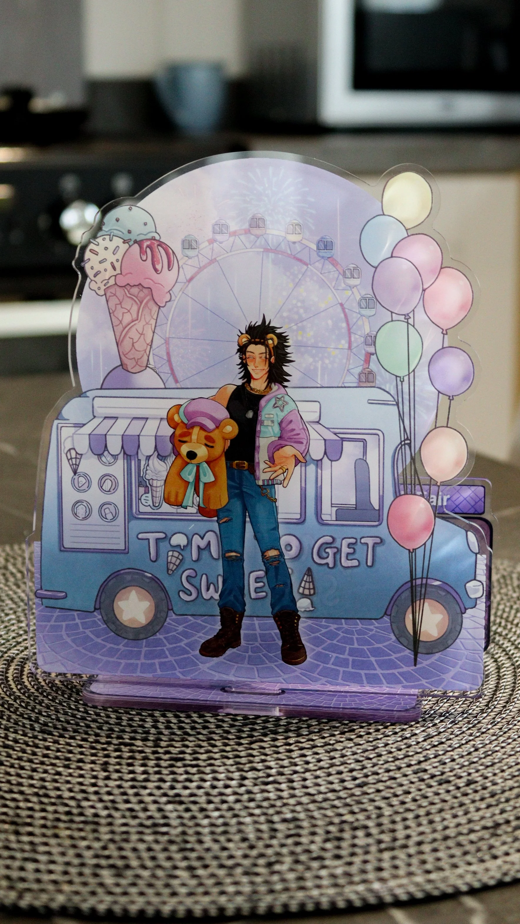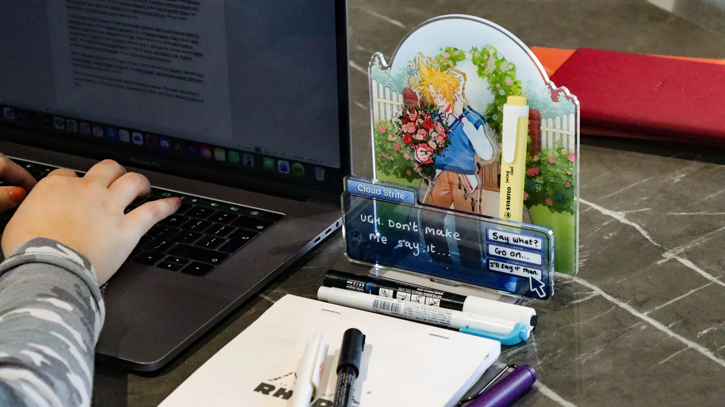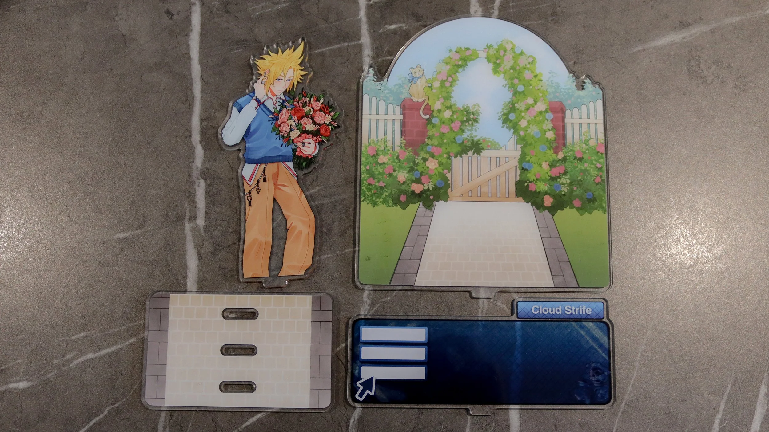 Inspired by ‘otome’ games and memo note-taking, this indulgent series is about placing characters Penguinsbite loves into otome contexts. Tell me you haven’t imagined your favourite character taking you on a date. You’re free to jot down quick notes or reminders on these visual novel styled standees.