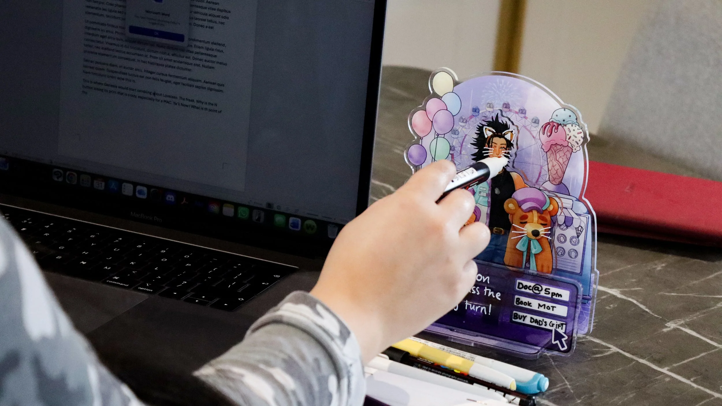 All surfaces of the standee can be drawn and written on. Don’t feel limited to the text box piece! Draw on their face, change their expression, or if you’re feeling adventurous, draw in another character! The unit can also be used for holding letters etc. The sky’s the limit.